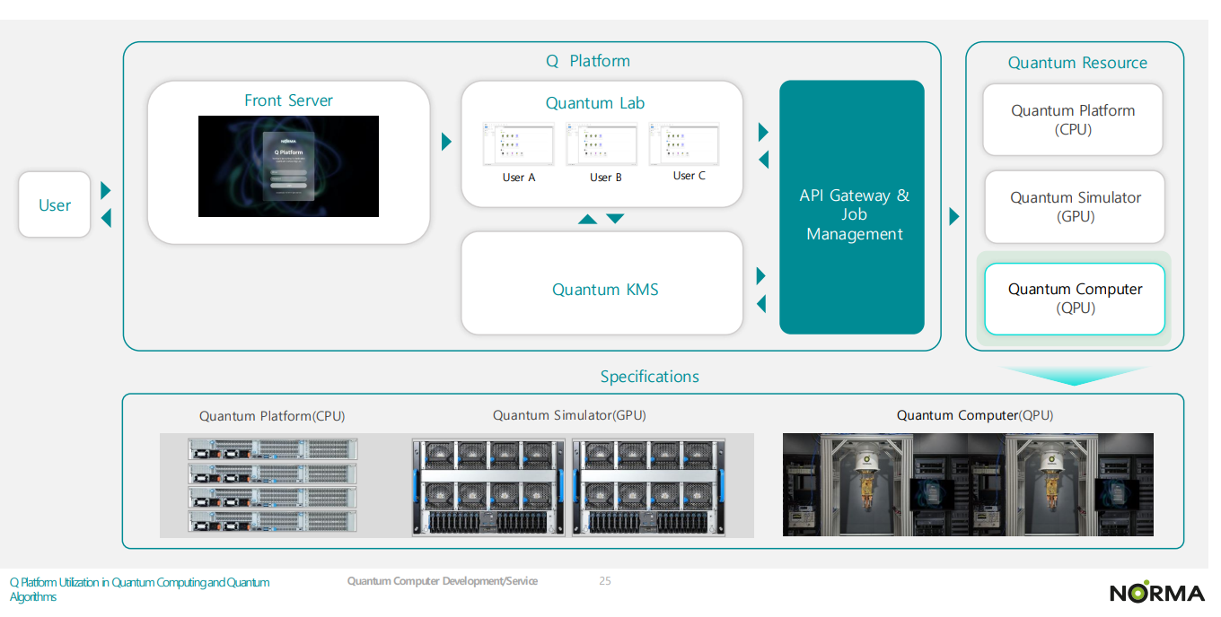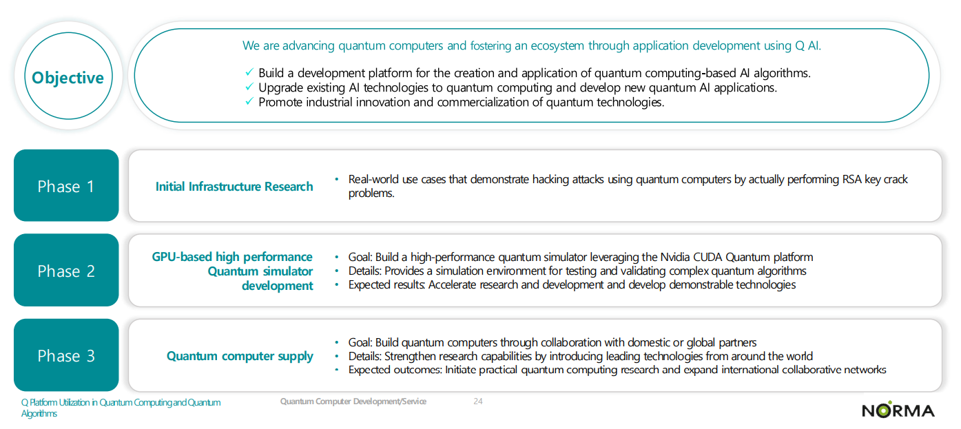 Norma is committed to developing its own quantum computers by building a CUDA quantum-based simulation infrastructure, integrating global technologies, and promoting the commercialization of quantum technologies through quantum AI